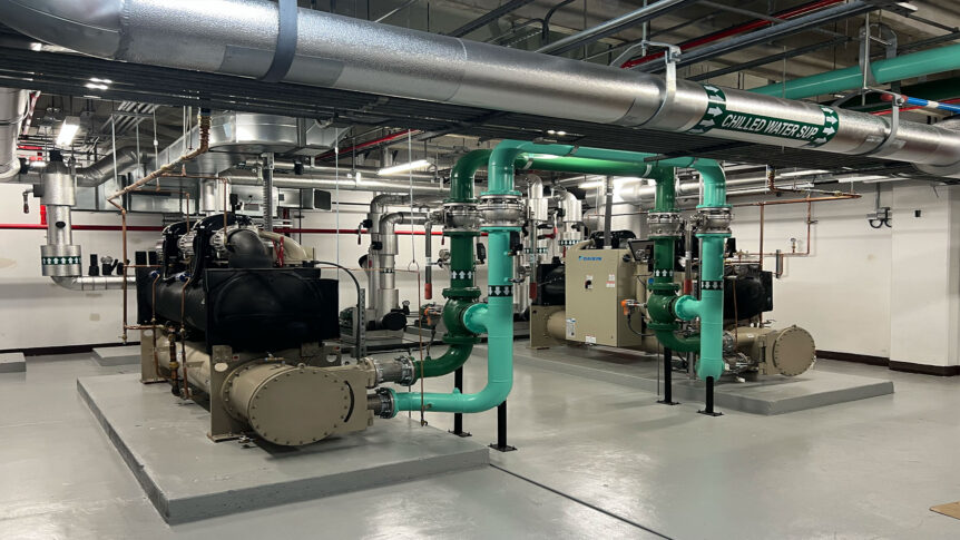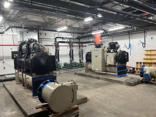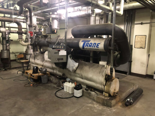Miami-Dade County Metrorail main shop. They had two inoperative chillers from the 70's. We retrofitted the entire mechanical room: two new 125 Tons Daikin Chillers, pumps, and chilled water piping.